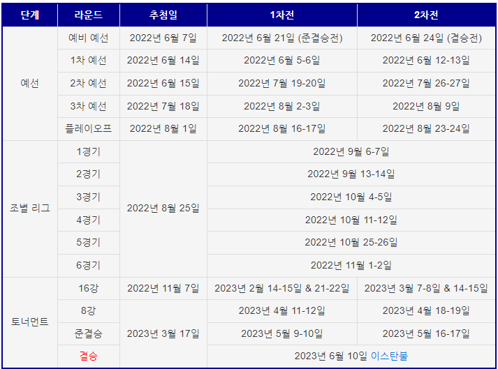 UEFA 챔피언스리그는 유럽축구연맹이 주관하는 축구대회로, 매년 유럽 각국의 리그 최상위 32개 클럽이 모여 겨루는 세계 최고의 축구대회이다. 2022년 6월에 시작해서 2023년 6월에 끝날 예정이다.